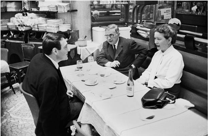 “Director Claude Lanzmann at a café with a couple of friends, who happen to be Simone de Beauvoir & Jean Paul Satre, 1964” . Thanks again @Dean_Frey.